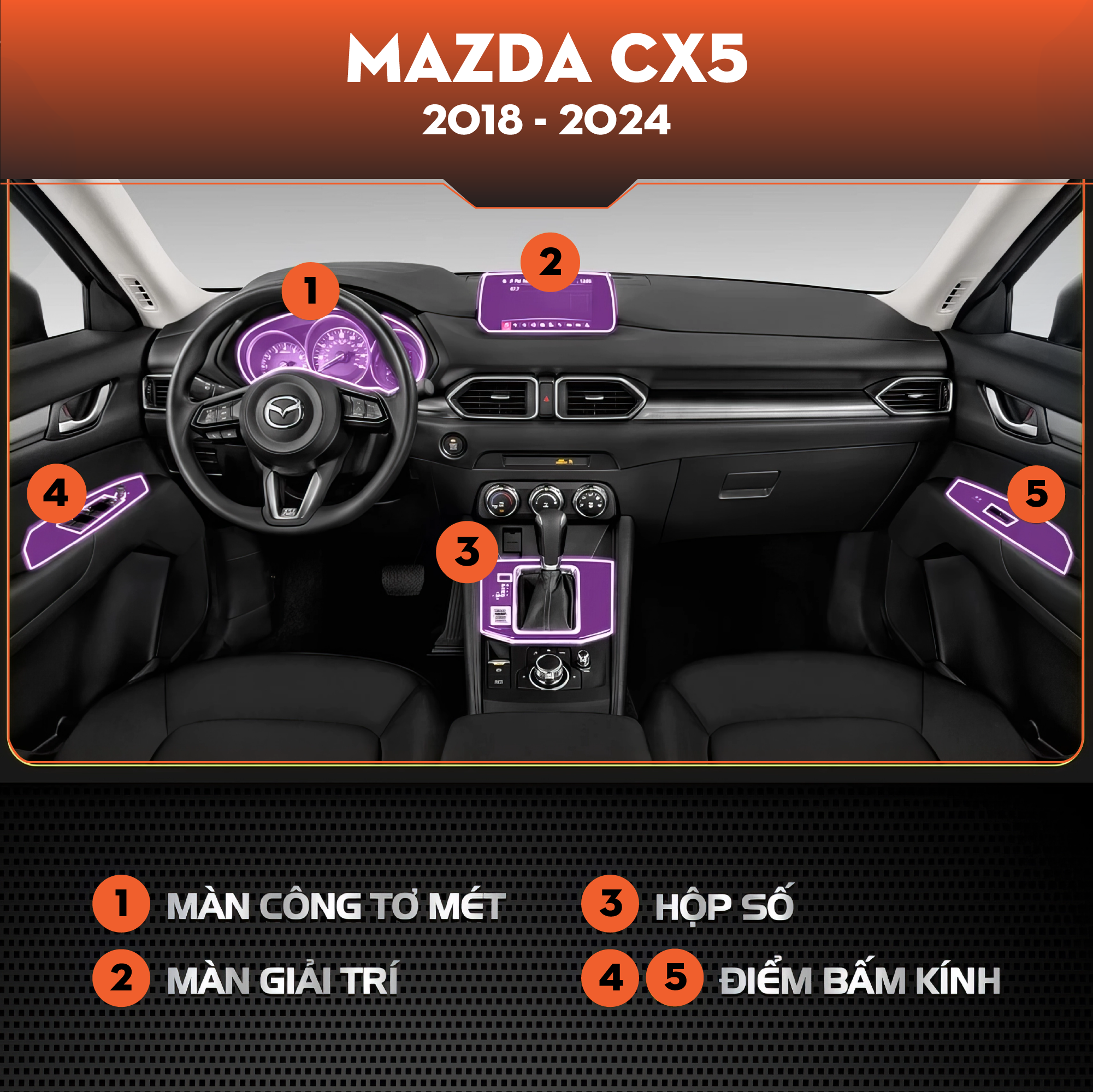 👉 Sản phẩm được thiết kế cắt sẵn theo form Mazda CX5 2018–2024, giúp dễ dàng dán tại nhà.
